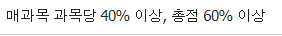 과락이 존재하므로 모든 과목을 일정량 이상 습득해야한다.
