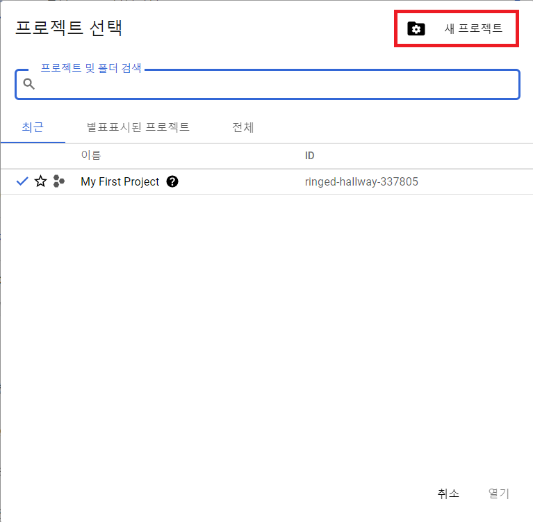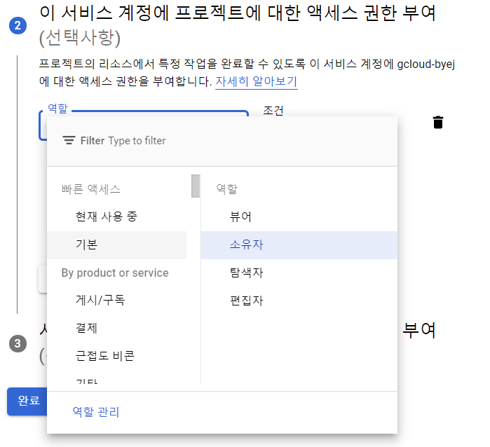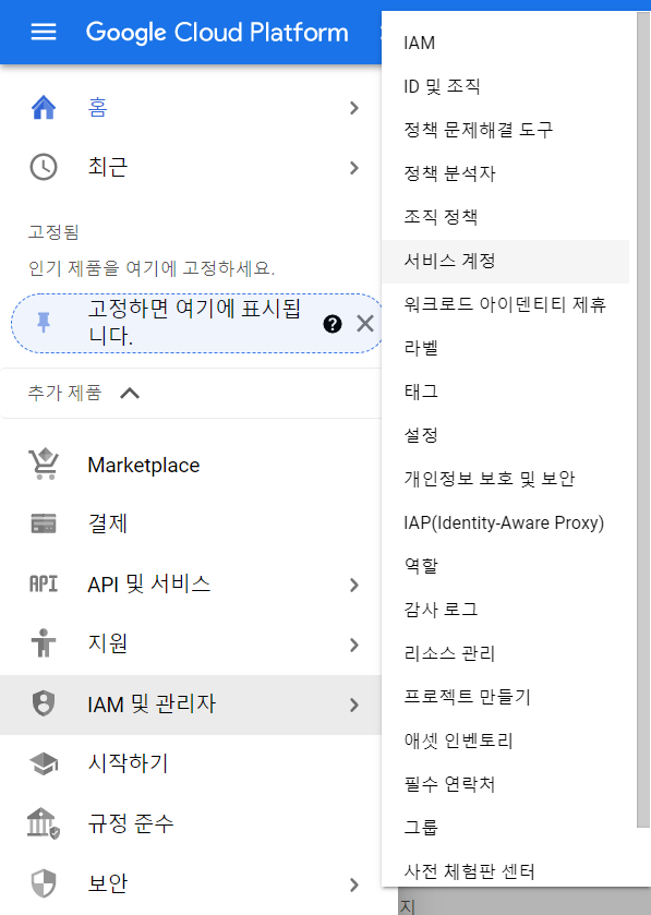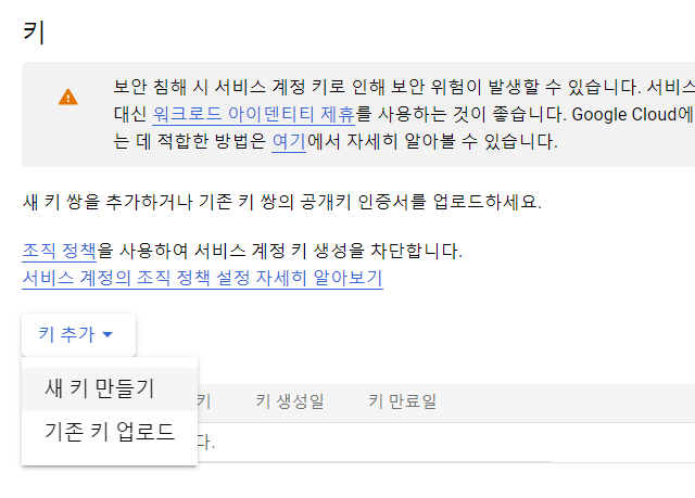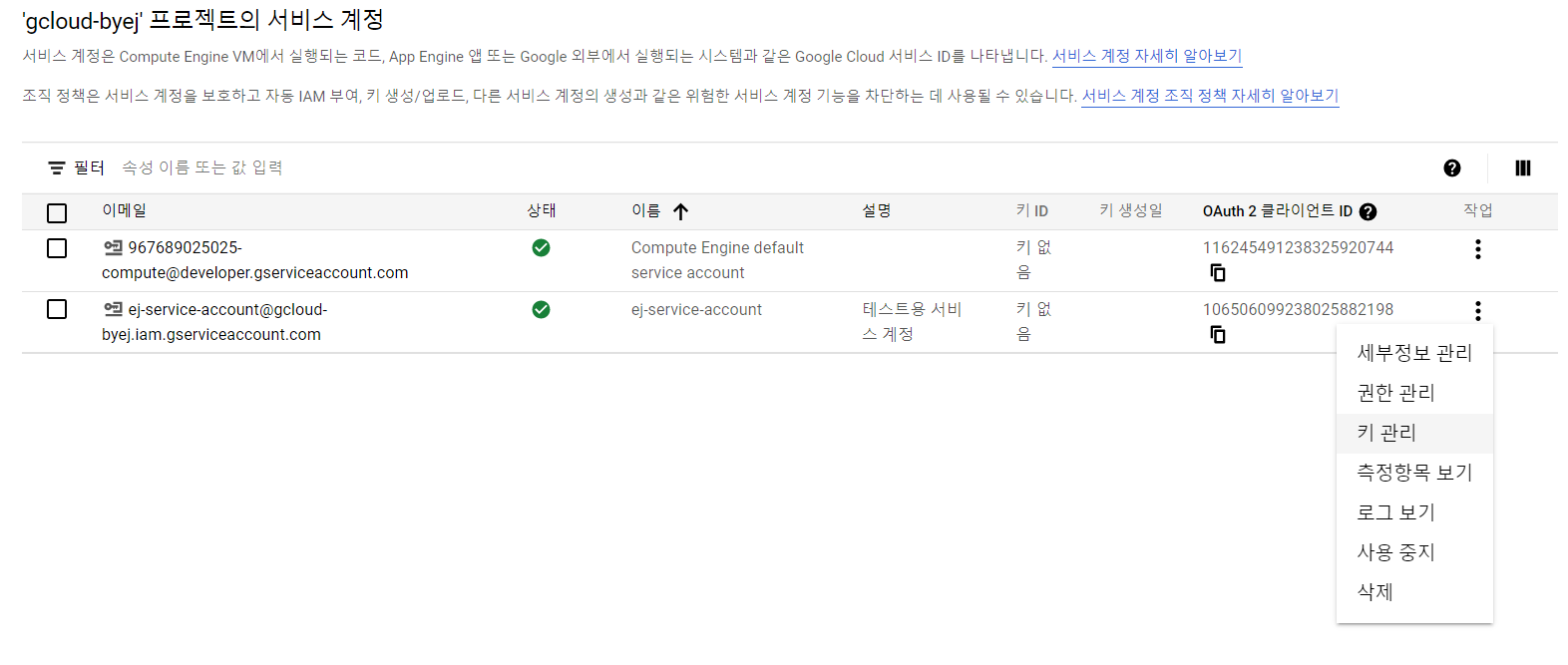 서비스 계정 목록에 다운로드한 키 값이 입력됨