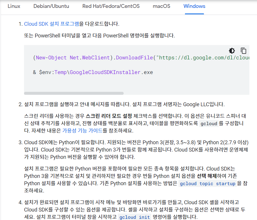 Cloud SDK는 Google Cloud에서의 개발을 위한 도구 모음으로 gcloud, gsutil, bq 명령줄 도구, 클라이언트 라이브러리, 로컬 에뮬레이터가 포함되어 있습니다.