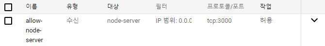 이제 node 서버에서 사용할 3000번 포트 수신을 열겠다.
