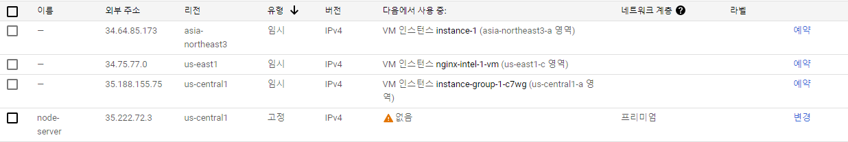 이렇게 고정 외부 IP가 설정되면, VM 생성시 네트워킹 설정 부분에서 외부 IP를 지정된 외부 IP로 사용할 수 있다.