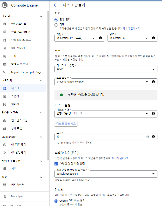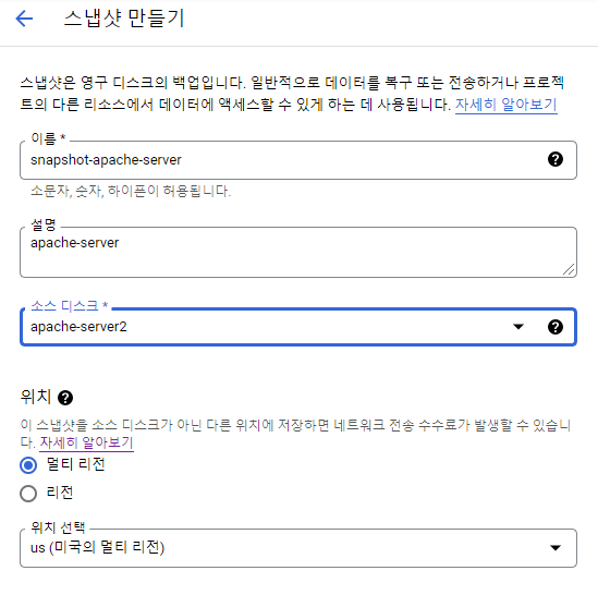 아파치 서버 설정이 된 VM 인스턴스 만들기 > 스냅샷찍기 > 디스크 만들기 > 이미지 만들기 > 인스턴스 템플릿 만들기 > 인스턴스 그룹 만들기 > 로그 밸런서 달기