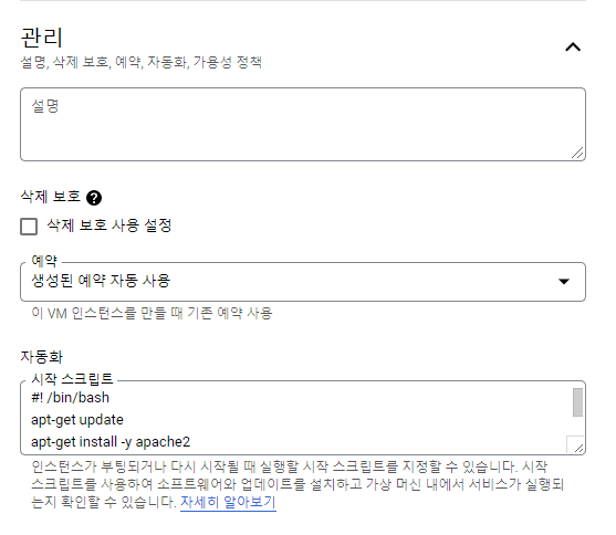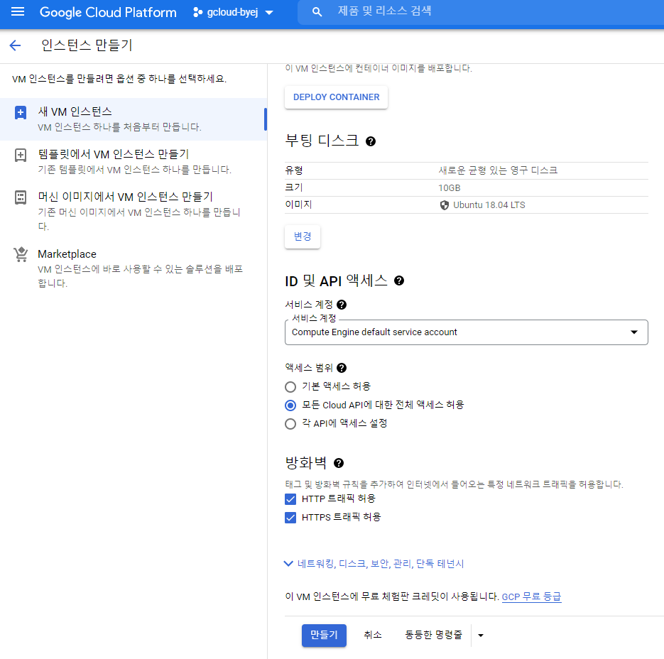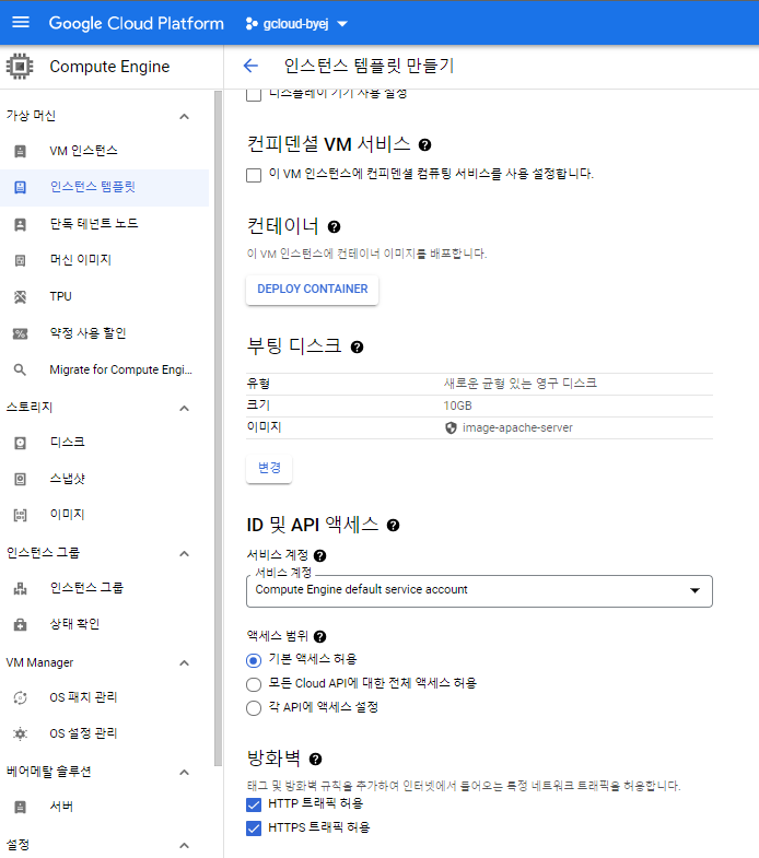1. 아파치 서버 설정이 된 VM 인스턴스 만들기