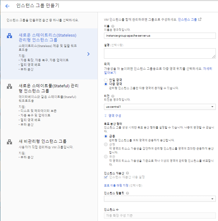 인스턴스 템플릿을 통해서 관리형 인스턴스 그룹을 만들면 동종의 인스턴스들이 만들어지기 때문에 애플리케이션에서 트래픽 증가와 감소를 원활하게 처리할 수 있다.