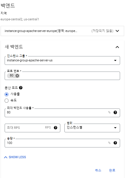 5번과 같이 설정하고 지역만 Europe으로 변경해서 인스턴스 그룹을 총 2개 만든다.