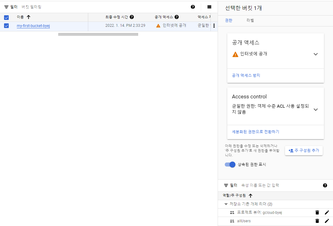 2. 내 GCS 내의 버킷 리스트 보기
