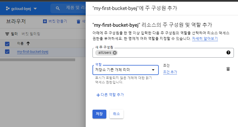 - Repository 등급 : 버킷을 생성할때 저장할 데이터의 특징에 따라 Repository 등급이 나뉘게 된다. Multi-reginal storage, regional storage, nearline stoage, coldline storage 4가지로 구분이 된다.