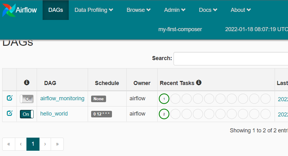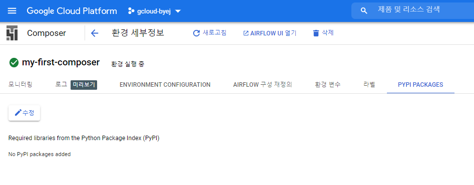 다시 컴포저로 돌아와서 airflow를 누른다.