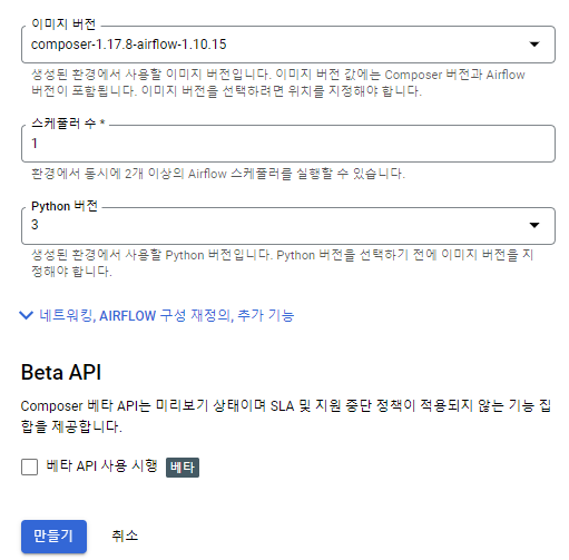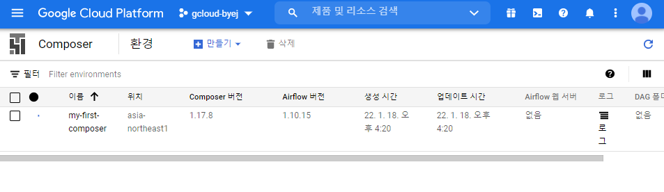 cloud composer는 Apache airflow를 기반으로 한 워크플로 통합서비스이다.