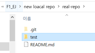 새로 만들어진 폴더에 가보면 .git이라는 폴더가 만들어진 것이 보인다. 그 의미는 real-repo 폴더가 로컬 저장소로 잘 지정되었다는 뜻이다.