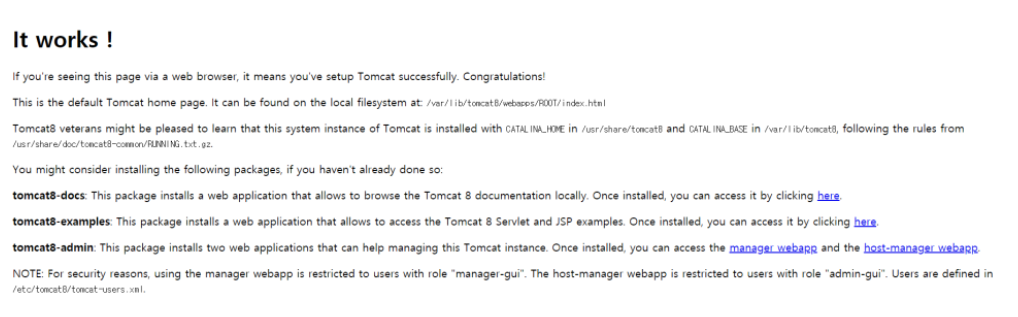 http://IP 주소:8080 를 쳤을때 나오는 톰캣 디폴트 페이지가 808포트를 지웠을때도 똑같이 나오면 연동 성공이다.