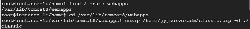 설정의 파일업로드를 통해 WEB-INF폴더의 상위폴더를 압축한 zip파일을 업로드 시킨다.