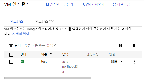 3-1. vm 인스턴스 옆에 ssh 버튼을 누른다.