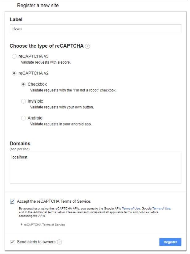 $_DVWA[ 'recaptcha_public_key' ] = '(Site Key 값 입력)';